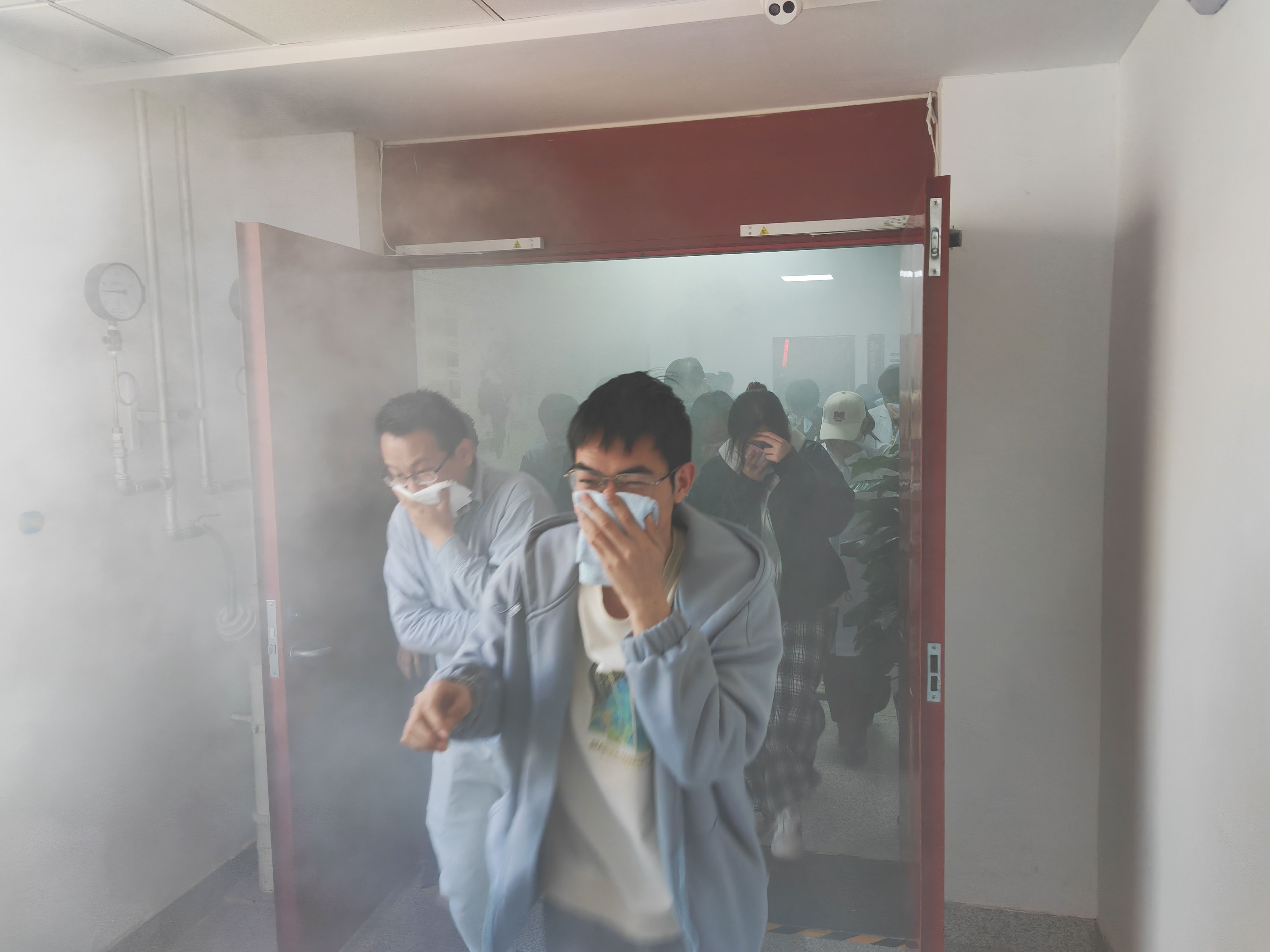 本次活动分为两个阶段。首先,在太阳集团党委保卫部的指导下,工作人员点燃烟冰模拟突发火灾事故。随着消防警报声响起,学院按照既定火灾疏散逃生演练预案,迅速组织师生沿安全逃生通道有序撤离。逃生演练结束后,党委保卫部杜春兴科长带领师生回顾了逃生演练过程中存在的问题,强调了火灾逃生过程中的注意事项,如毛巾需打湿后捂住口鼻、陌生环境提前观察逃生疏散路线等,并对学校办公学习场所设置的常用消防设施进行了讲解和演示。