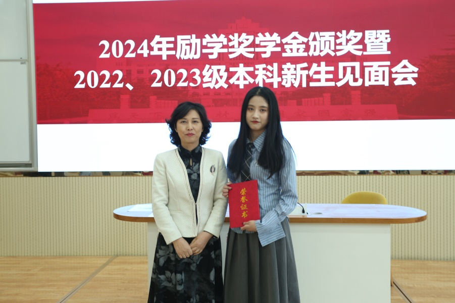 刘军、王芬分别向励学奖学金一等奖、二等奖获奖同学颁发荣誉证书。一等奖获得者2020级本科生付建丰代表获奖同学表达了对学校、学院、老师及校友们的感激之情,表示今后要继续努力,积极进取,以实际行动回馈师长厚爱,并分享了自身学习成长经历,为新生们提供了关于专业学习、田野实践的有益建议。