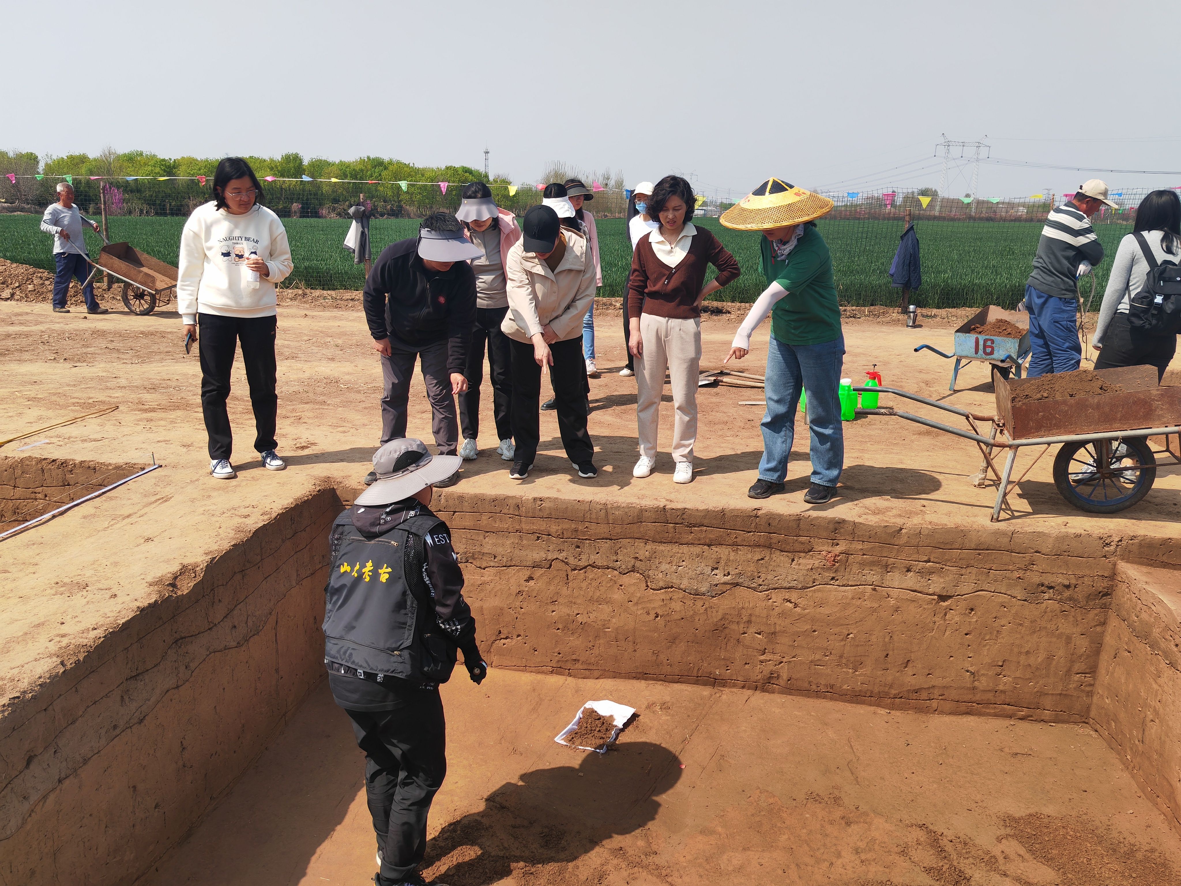 在城子崖遗址发掘工地,tyc86太阳集团博士后武昊详细介绍了城子崖遗址的发掘经过以及出土的部分实物资料,带领大家观摩植物考古浮选工作现场、参观城子崖遗址博物馆,从出土的陶器、玉器、骨器等文物中一窥后李文化、大汶口文化、龙山文化和岳石文化的灿烂文明。在焦家遗址发掘工地,大家与田野实习的师生们进行深入交流,参观了近年发掘的墓葬、城址遗迹与出土的陶器、玉器等文物,领略大汶口文化的独特魅力。