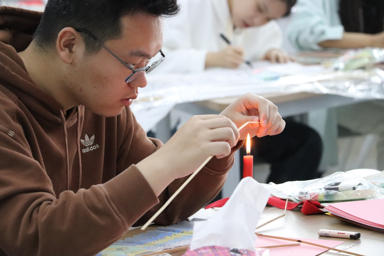 纸鸢寄春,筝影绘晴。在纸鸢制作活动中,聚焦弘扬民俗文化,传承工匠精神,同学们从学习制作技艺开始,亲身体验非遗魅力。构思与手绘风筝图案、编织骨架结构、精准粘贴封边,一只只形态各异、色彩斑斓的纸鸢在手中诞生。学生在实操中学习风筝制作的技艺与文化内涵,让参与者深刻体会到手工艺的乐趣和传统文化的底蕴。