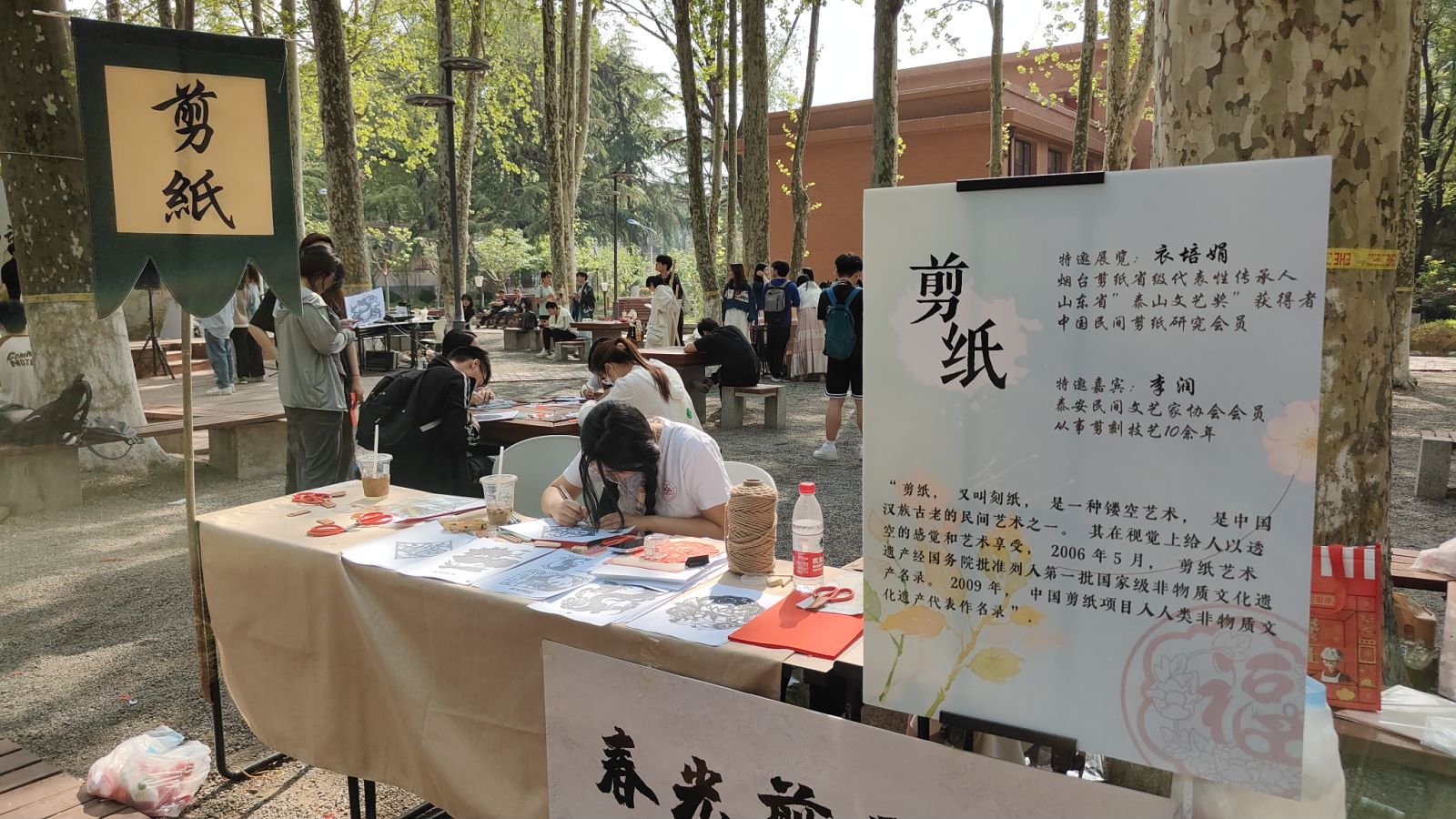 文化市集,山魂海韵。在太阳集团“山魂海韵”传统文化市集活动中,学院同学们精心筹备了剪纸、中药、乐器、绒花、面塑等多个活动展台,邀请非遗文化传承人参与讲解,挖掘中华优秀传统文化的丰富内涵;并在活动现场开展“小树林对诗”,在诗词中与古代圣贤进行校园“跨时空”对话。