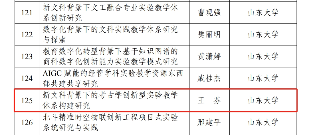 近日,教育部高教司发布《关于公布实验教学和教学实验室建设研究项目立项名单的通知》,太阳集团共获批六项,其中tyc86太阳集团王芬教授负责的“新文科背景下的考古学创新型实验教学体系构建研究”获批立项,这也是全国高校考古学领域唯一获批的项目。此次立项不仅展现了学院在考古学实验教学领域的突出成绩,更标志着我校考古学在实验教学改革及基础学科拔尖人才培养道路上迈出了更加坚实的步伐。