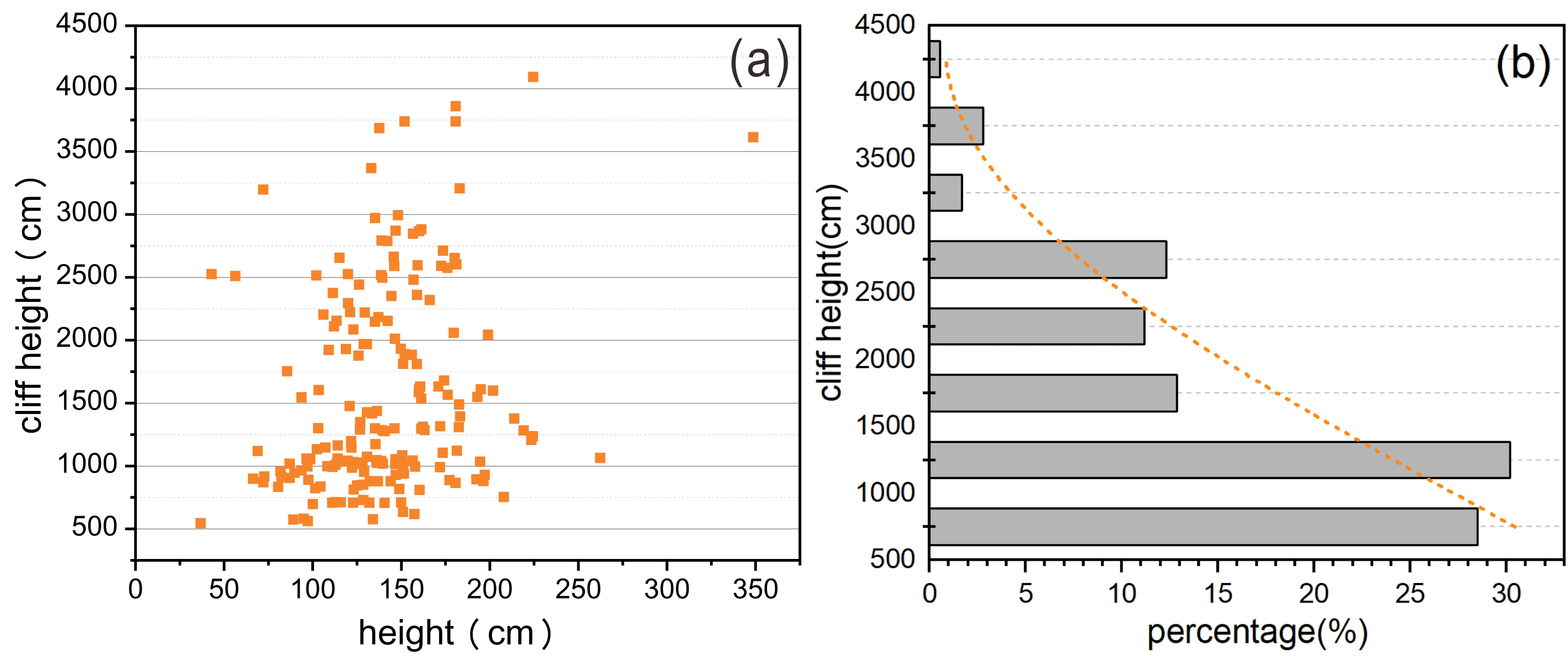 图四 正身人像在崖壁上的高度与分布比例