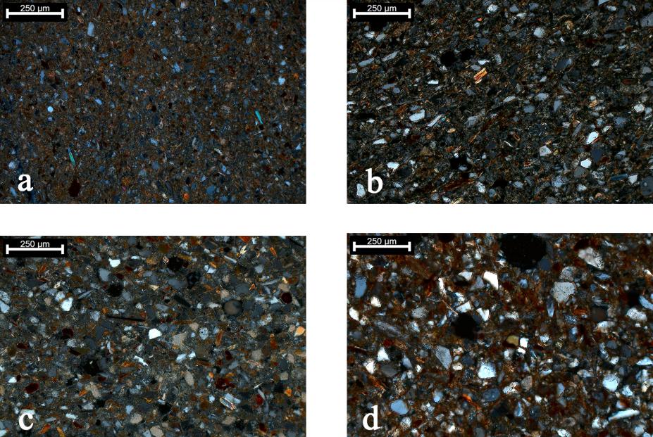 图 2 代表4个遗址典型陶范样品的岩相组成
