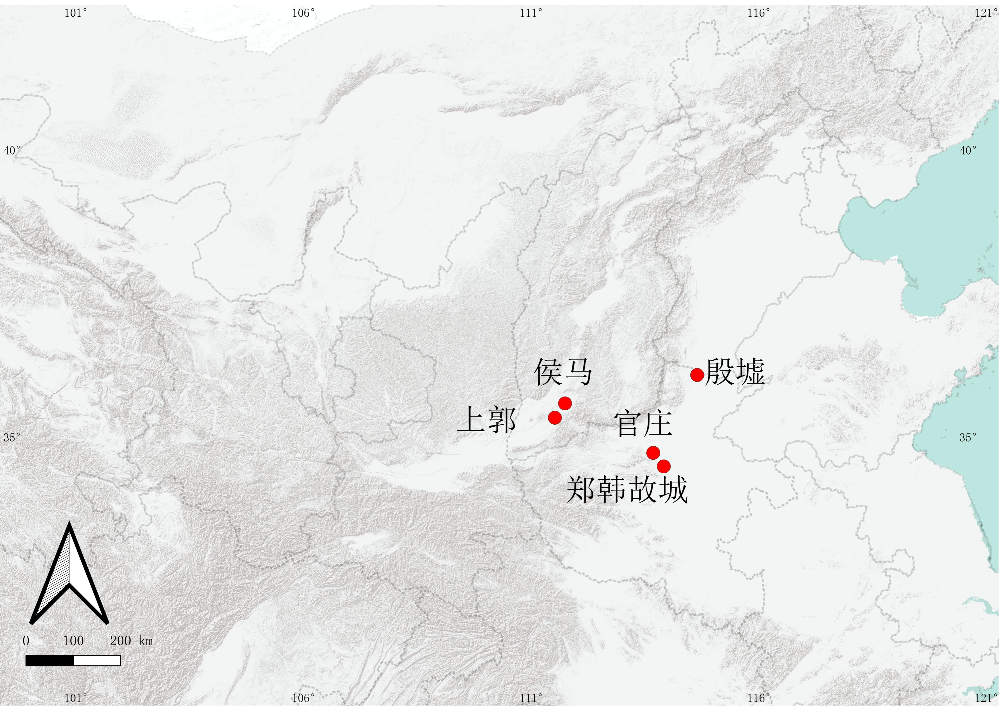 a.上郭;b:官庄;c:侯马;d:郑韩故城