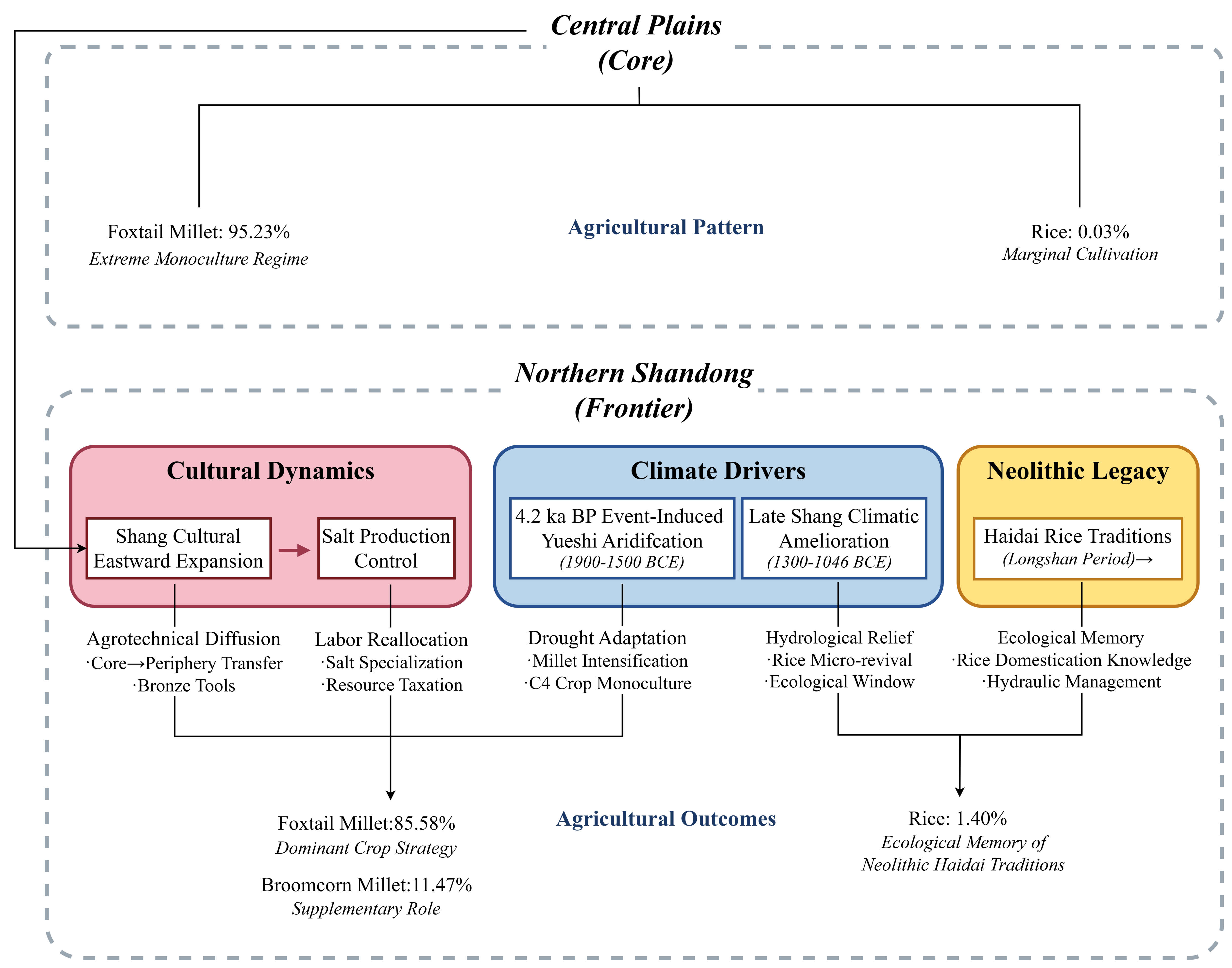 近日,tyc86太阳集团师生在国际学术期刊Journal of Archaeological Science上发表题为“Millet dominance and rice resilience at the Shang’s eastern frontier: Climate, cultural interaction, and agricultural adaptation (1300–1046 BCE)”的研究成果。论文第一作者为tyc86太阳集团2023级硕士研究生许慧雨,山东省文物考古研究院王子孟副研究馆员和tyc86太阳集团王灿研究员为论文的通讯作者,共同作者包括tyc86太阳集团硕士研究生彭麒烨、王文杰、吴雨遥、张朝阳,博士研究生武莹莹和山东省文物考古研究院秦佑鹏馆员。