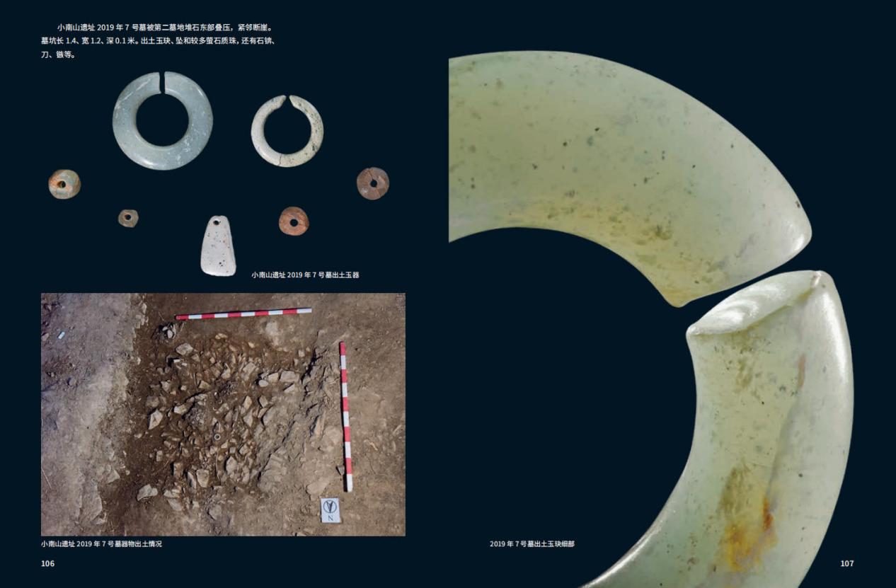 小南山遗址是黑龙江省东部地区迄今考古发掘面积最大、年代跨度最长的一处史前时代的遗址。2015-2017年、2019-2021年对遗址进行了正式考古发掘,发掘总面积2700平方米。考古发现以史前时期文化遗存为主,包括房址4座,墓地3处,还有少量沟、灰坑等,获得玉器144件、石制品5万余件和少量陶器。2015年以来在小南山遗址发掘出土玉器140余件,加上以往发现可以确认出自小南山遗址的玉器总数超过200件。这些距今9000年左右的玉器种类包括玦、环、管、珠、璧、斧和各类坠饰,构成了目前所知中国最早的玉文化组合面貌。