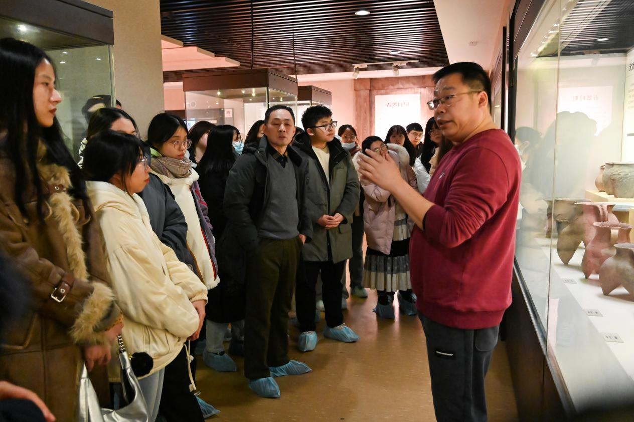 1月16日,师生一行前往陕西历史博物馆参观学习。陕西历史博物馆,2008年被评为国家一级博物馆,2009年被确定为中央地方共建国家级重点博物馆,师生们依次参观了馆内序言厅、基本陈列、专题展。随后,师生们参观了中国社会科学院考古研究所西安研究室,在校友张建锋老师和站内宋江宁老师的带领下,参观了中国社会科学院考古研究所博物馆西安分馆。