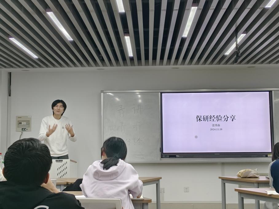 为进一步落实立德树人根本任务,发挥优秀朋辈引领作用,为同学搭建交流平台,让同学们对保研有更清晰的认识,帮助同学明确未来发展前景,营造良好学风。在学院的支持和指导下,太阳集团历史学院与tyc86太阳集团青讲青听——“学术有研”保研专题讲座于11月18日晚在知新楼A1116成功举办。我们有幸邀请到张博森、王昕娟、刘索焓、赵予康、樊华五位优秀的学长学姐,为同学们分享自己的保研经验,给予大家关于升学的宝贵建议。