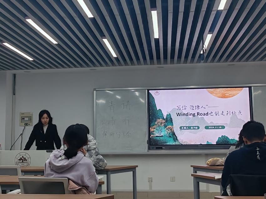 然后是来自历史学院历史学专业2021级本科生,现推免至北京大学国际法学院法律(非法学)专业的王昕娟学姐。王昕娟学姐在向大家介绍推免的具体时间线后,详细的为同学们她参加北京大学、上海交通大学、浙江大学等院校的夏令营的心得感悟,为有相关兴趣的同学提供了宝贵的经验。