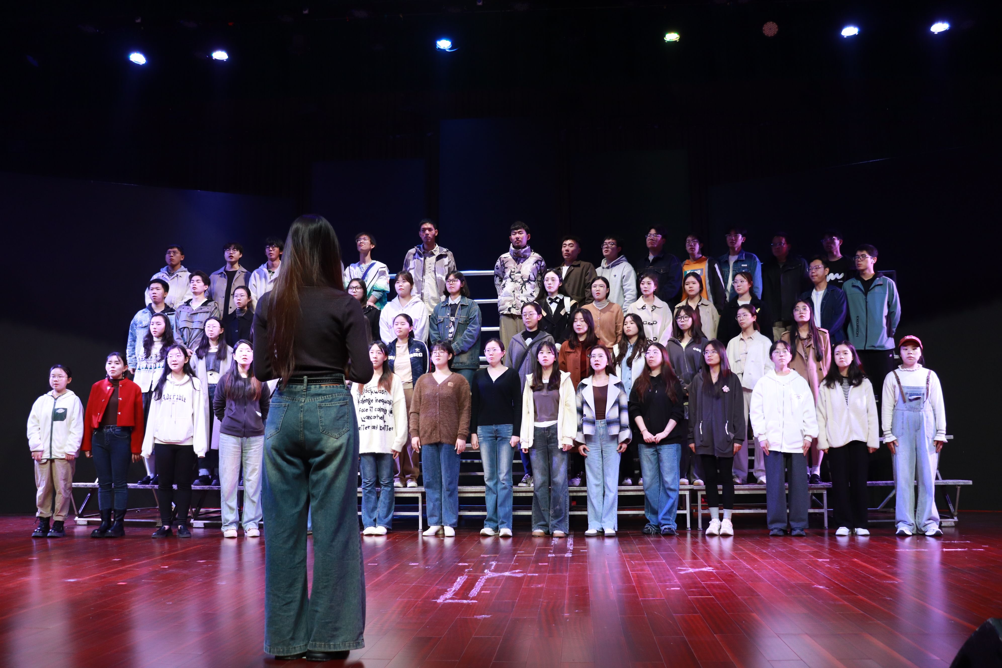 数周砺一曲,雅韵蓄待发。在数周的排练过程中,合唱团师生们相互学习、相互鼓励,精心策划、编排合唱曲目和表演形式,力求将最好的表演呈现给观众。学院领导和老师们也给予了密切关注和悉心指导,为合唱团的成员提供了极大的支持和鼓励。