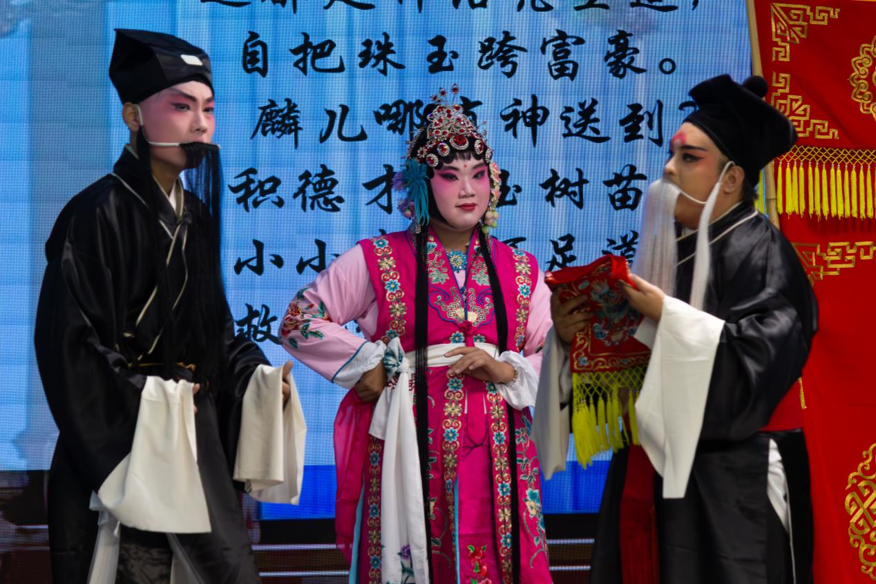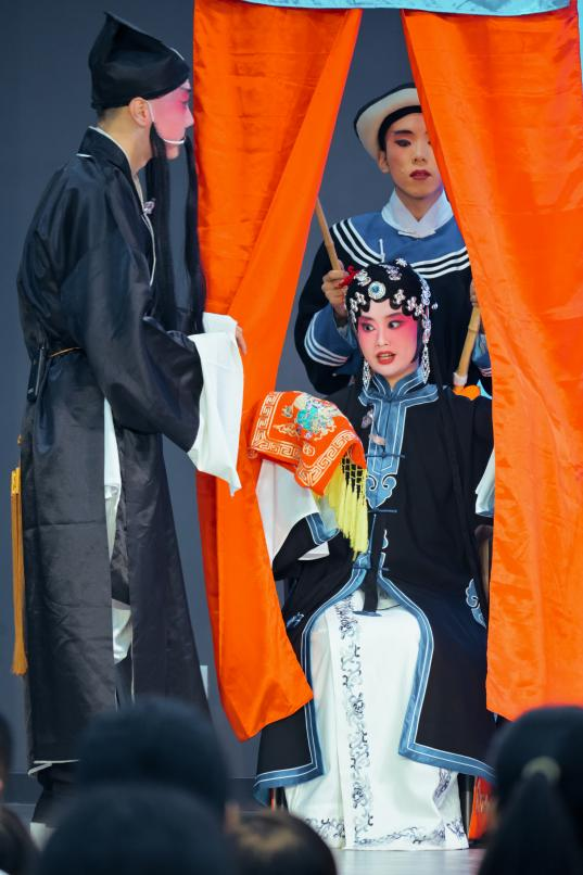 《红娘・花园相会》中,贾林翰、李嘉杰、蔡巧兮、赵露四位演员生动地演绎了红娘的活泼与张生的憨直,将这个经典故事展现得淋漓尽致。《锁麟囊・春秋亭》中,蒙晓晗、刘明慧、张子恩、张凯杰、李嘉杰、周子蘅、石棋文、杨皓然以精美的扮相和动人的唱腔打动人心,生动演绎了一个善有善报的暖心故事。