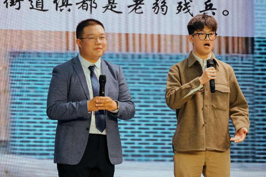此外,彭旭同学唱响《定军山》,以扎实的功底展现了老将黄忠的自信豪迈,一声“宝刀未老”响彻全场,尽显豪气干云。在《甘露寺》选段中,王贵豪凭借精湛的表演,完美诠释了乔玄的 “职场话术”,观众仿佛置身于古代的 “三方会谈” 之中,深刻领略到了语言艺术的魅力。《空城计》选段由刘煜浩、王大可一同呈现,他们通过精彩表演,重现了诸葛亮与司马懿之间的智慧对决。