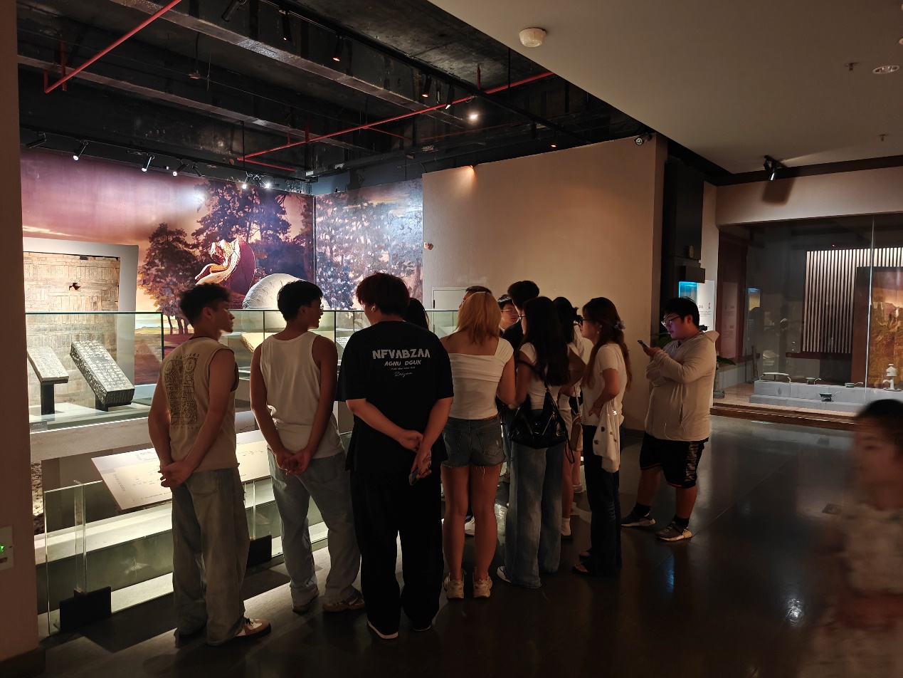 7月3日上午,队伍前往南京博物院。作为中国三大博物馆之一,南京博物院馆藏文物数量众多、种类丰富。从书画、玉器到青铜器,每一件都堪称珍品。同学们沉浸在艺术的海洋中,感受着古代工匠的精湛技艺和中华文化的博大精深。下午,大家来到六朝博物馆,这里以丰富的文物和多媒体展示,生动再现了六朝时期的历史风貌和文化成就。同学们通过参观,对六朝时期的政治、经济、文化有了更深入的了解。